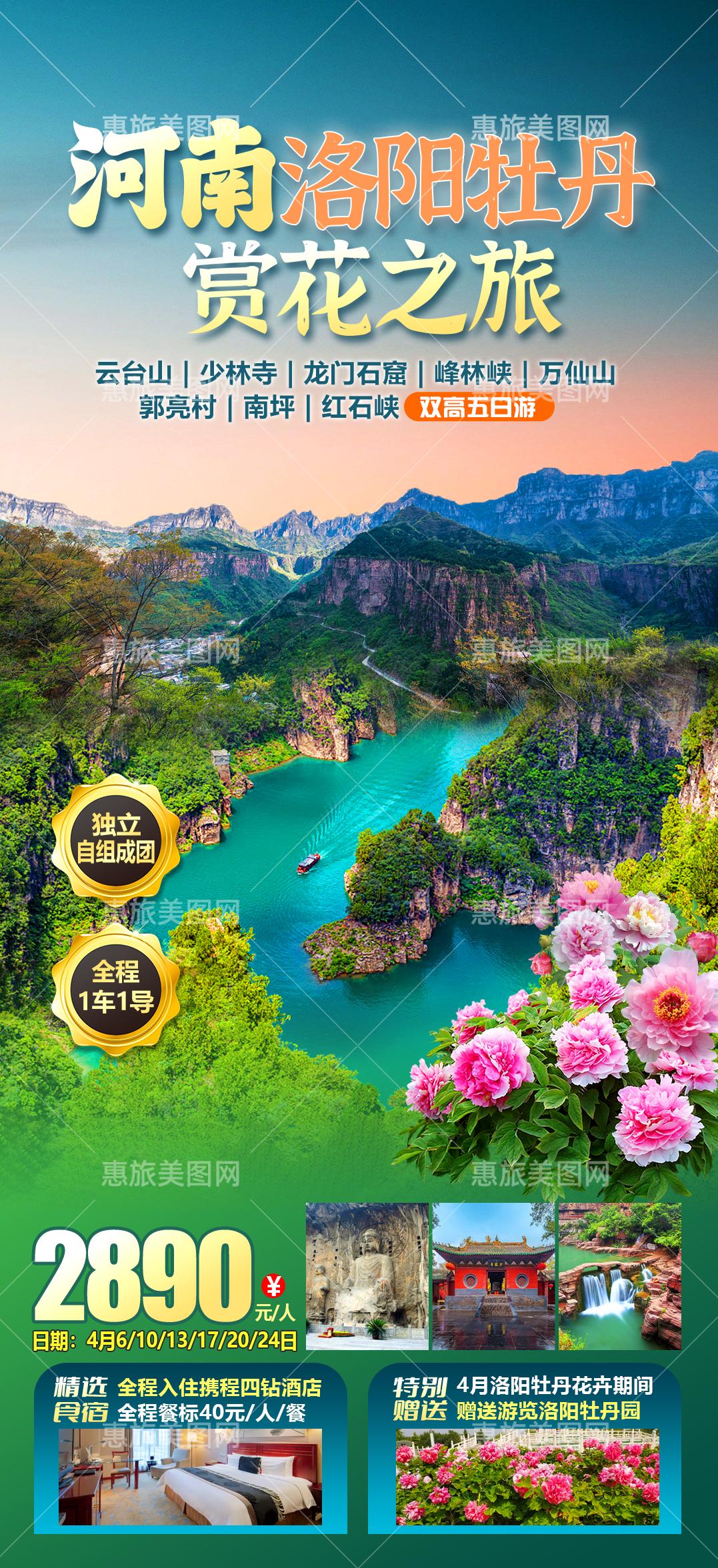 河南洛阳牡丹(赏花之旅)长线游 云台山| 少林寺 | 龙门石窟 峰林峡] 万仙山郭亮村|南坪|红石峡 五日游