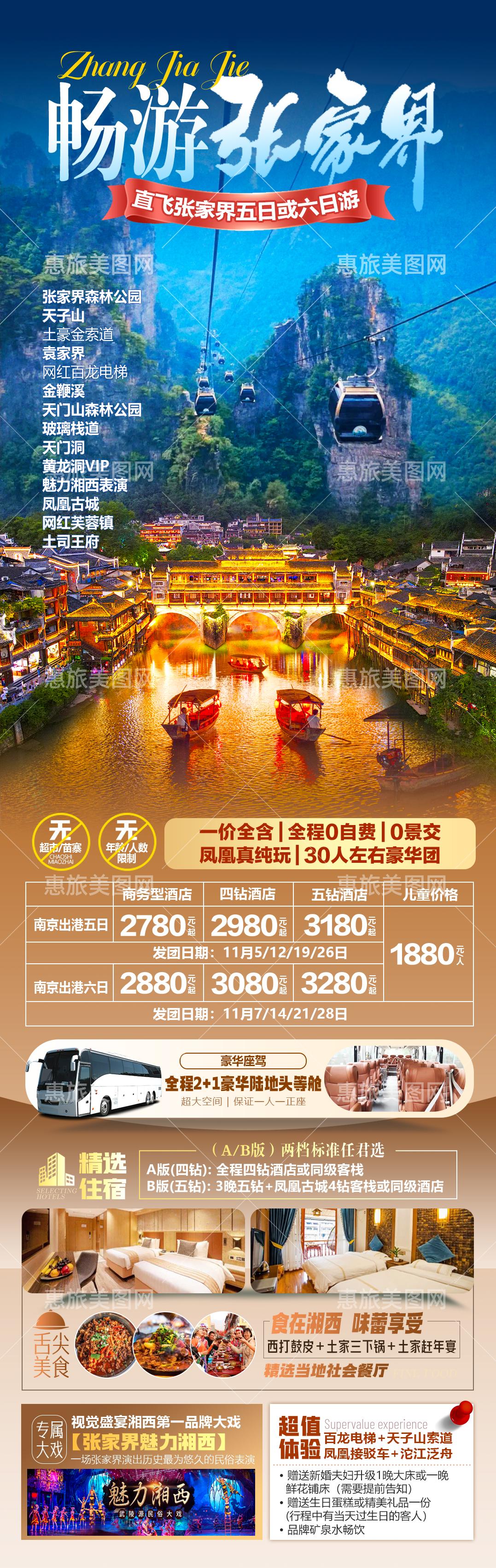 • 1 畅游张家界(国内长线游)张家界森林公园-天子山-袁家界-金鞭溪-天门洞-凤凰古城-芙蓉镇